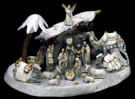 #554A Creche stone back to the creche, ........not the palm tree n or roof Hay-top.