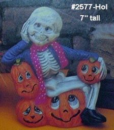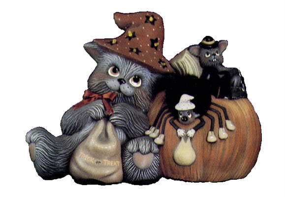 Cat with pumpkin and Spider: 7 1/2" High #0450-Don