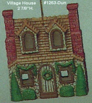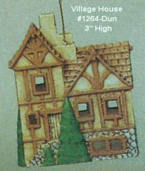 Village Houses, 2 chimney 2 7/8" High #1263-Dun