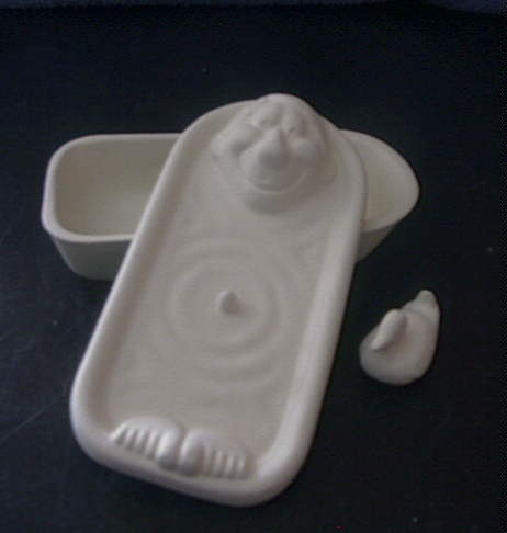 Opens into a box... Humorous Man in Tub with his little ducky...