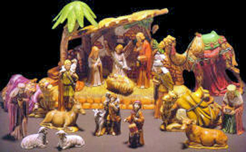 #554A Creche stone back to the creche, ........not the palm tree n or roof Hay-top.