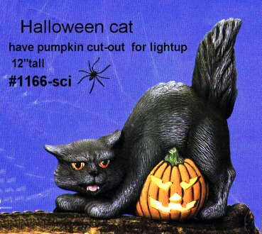 Cat with pumpkin and Spider: 7 1/2" High #0450-Don