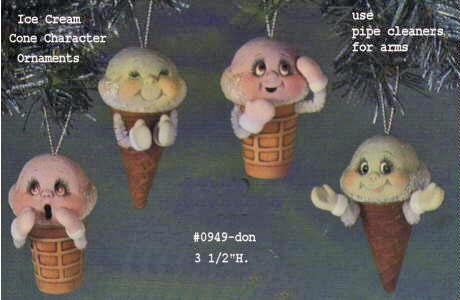 Ice cream Cone Character Ornaments Set of 4 3 1/2 " High #0949-Don