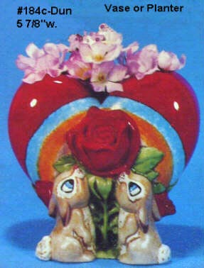 Vase Bunny with rose 5-7/8"Wide #0184c-Dun.