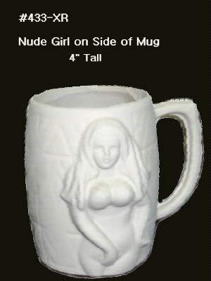 Naughty nude girl on side of this mug - enjoying herself