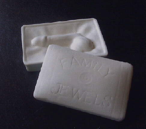 Remove the lid, to see, bottom has a molded shape of a man's private parts, all of them. This box will surely get some red faces when they open it up unsuspecting #XR-jewel